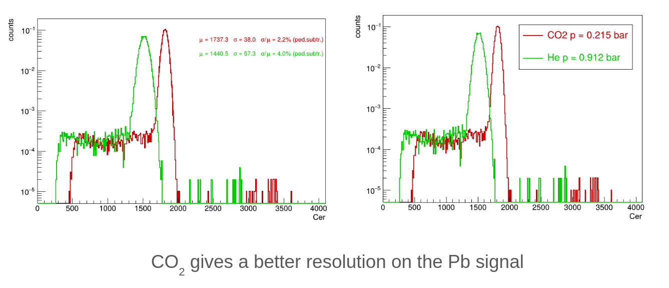 - On Friday the He radiator in the XCET counter was replaced by CO2. The latter would become the choice for low-energy ion beams, due to the larger photon yield. An improvement in the resolution by a factor ~2 was indeed observed in spite of a ~4.5 times lower pressure